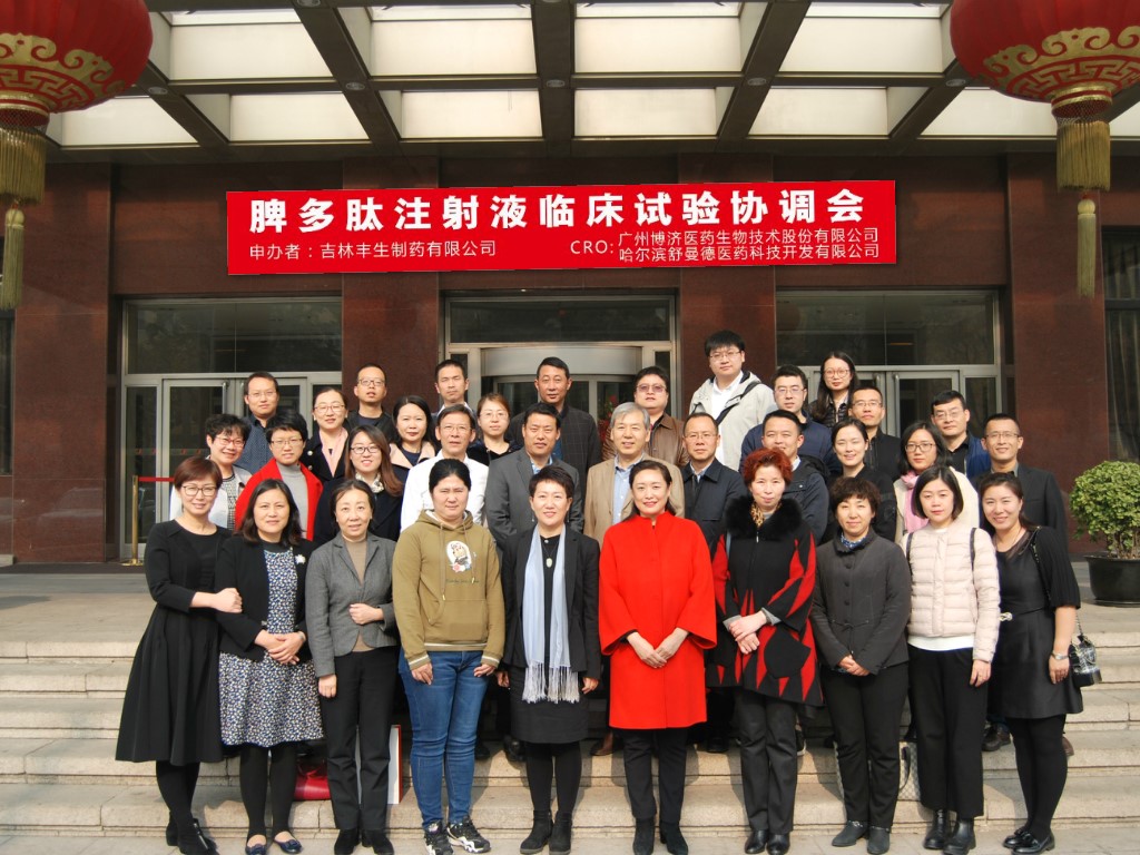 2018年11月3日,由吉林豐生制藥有限公司申辦、廣州博濟醫(yī)藥生物技術(shù)股份有限公司和哈爾濱舒曼德醫(yī)藥科技開發(fā)有限公司協(xié)辦、博惠康(北京)數(shù)據(jù)科技有限公司共同參與的“脾多肽注射液臨床試驗協(xié)調(diào)會“在北京前門建國飯店順利召開。