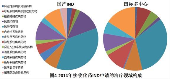2014年接收化藥IND申請(qǐng)的治療領(lǐng)域構(gòu)成情況見圖4。